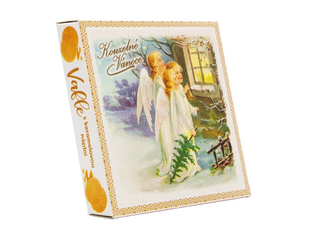 Krehké vafle s bohatou karamelovou náplňou, krásne zabalené v darčekovej krabičke so stojanom – perfektná sladká pozornosť pre Vianoce aj zimné chvíle pohody.