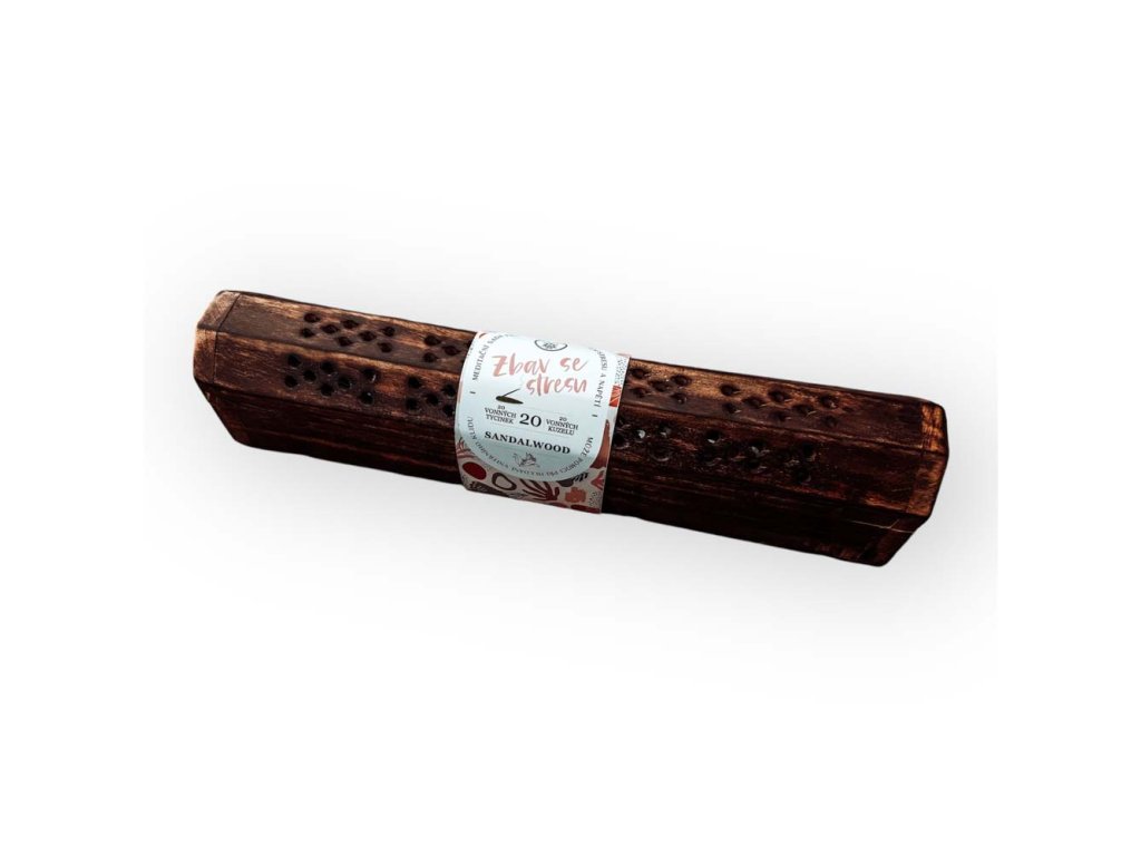 20 kusov vonných tyčiniek v drevenej krabičke s nápisom „Zbav sa stresu“ – pre príjemnú vôňu a relaxačnú atmosféru.