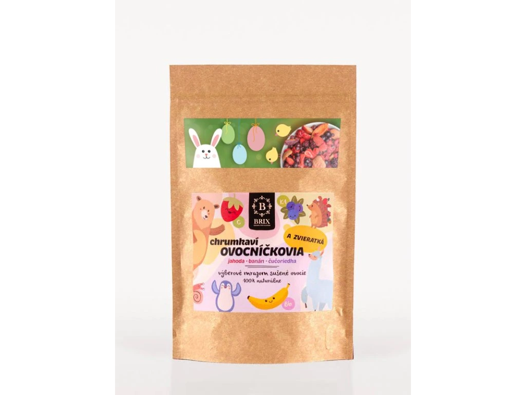 🐣 Doprajte malým šibačom zdravú výslužku plnú chrumkavých mrazom sušených jahôd, banánov a lesných čučoriedok v hravom zvieratkovom balení.