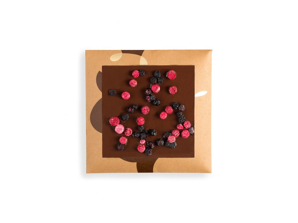 🫐🍇 Ovocne svieža tabuľka, ktorá spája výraznú horkú čokoládu so šťavnatou chuťou sušených čučoriedok a ríbezlí.