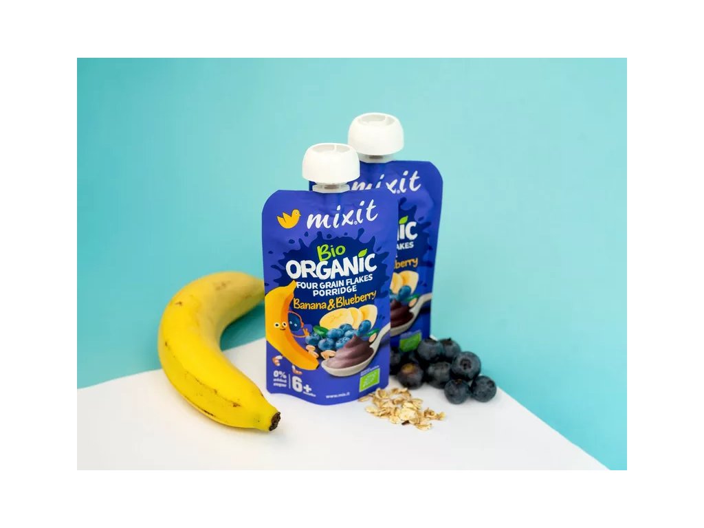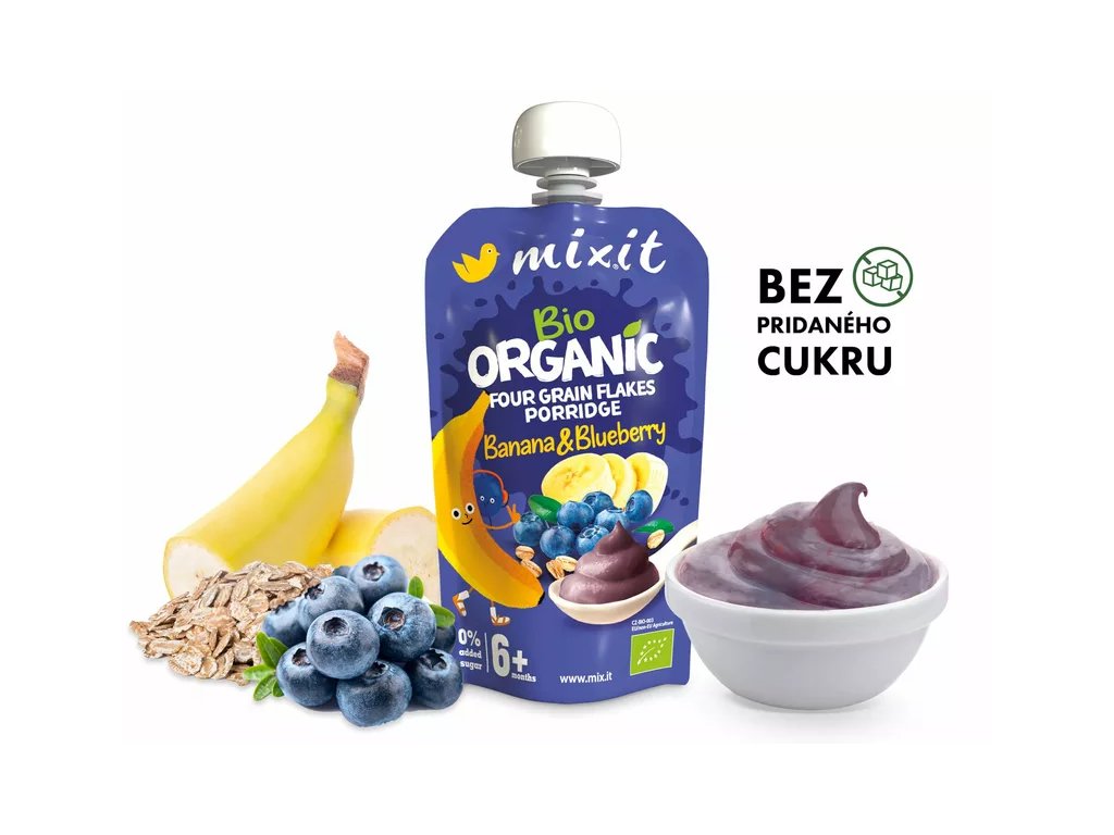 Našim malým Mixiťákom chceme dopriať len to najlepšie. Preto sme do tejto kaše dali okrem bio banánu a bio čučoriedok aj bio vločky z ekologického poľnohospodárstva. Pre dodanie komplexných živín sme zvolili rovno štyri druhy vločiek – ražné, ovsené, pšeničné a jačmenné. Prirodzene sladké, dokonale zrelé. V tejto kaši nájdete len tie najlepšie ingrediencie, žiadne zbytočné prísady. Nepridali sme žiadny cukor ani konzervačné látky, pretože veríme, že pre deti je najlepšie to, čo je najprirodzenejšie.