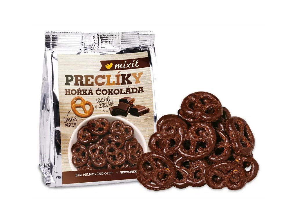 Chrumkavé praclíky s nádychom slanosti obalené v intenzívnej horkej čokoláde – harmonický kontrast chutí, ktorý si obľúbite ku káve alebo ako rýchly snack počas dňa.