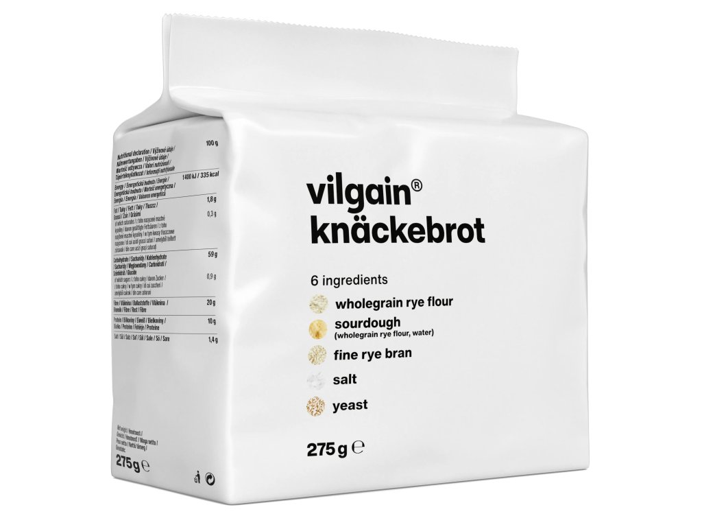 Vilgain Knäckebrot sú extra tenké, chrumkavé plátky z celozrnnej ražnej múky – ideálne ako základ k raňajkám, desiate, snack medzi jedlami alebo ako príloha k šalátom a pomazánkam.